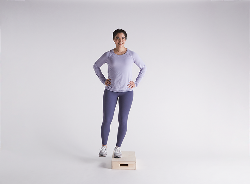 Apprends à faire un step up latéral pour améliorer la force du bas du corps et l'Équilibre général, ainsi que des modifications pour rendre cet exercice plus facile ou plus difficile.